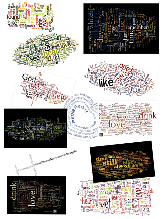 This is a type of found poem – inspiration from the Writing From Words prompt. There, along with the challenge were links to “Wordles” – word clouds, computer-generated from a variety of texts (from blogs to books to Bible verses).