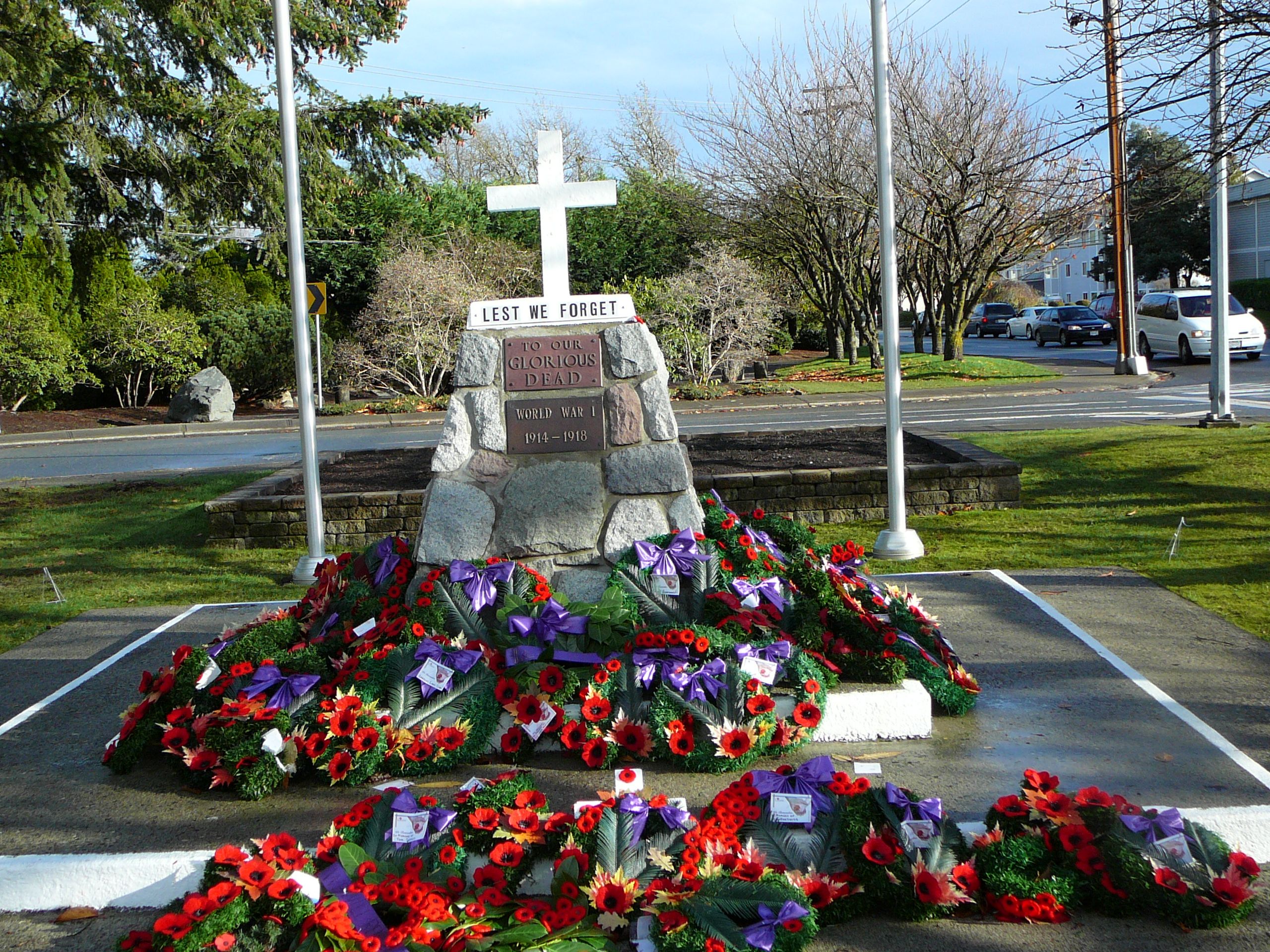 We commemorate by wearing flocked red poppies in the weeks leading up to November 11th and on the day, gathering at cenotaphs throughout the country to lay wreaths, pray prayers, and honor our veterans with songs, readings, flypasts, bugle calls, bagpipes, and salutes.
