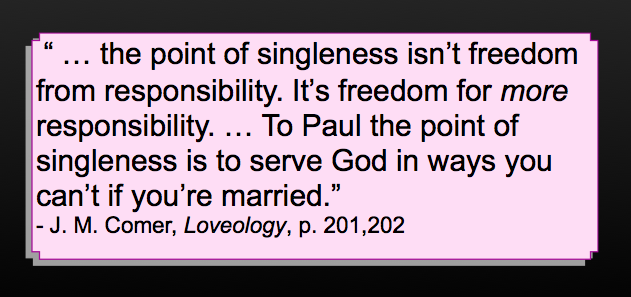I like the way he examines 21st century ideas and assumptions about love, courtship and marriage, contrasting how the culture of Bible times differed from ours. He goes into the history of some of our customs showing how practices like dating and choosing one’s own marriage partner are recent with a dubious track record for creating long-lasting marriages (though he doesn’t advocate arranged marriages). While he does trip all over himself trying not to give offense on socially tricky topics like men taking the leadership role in marriage and a Christian stance toward homosexuality, he does end up sticking with the orthodox biblical position (despite its current unpopularity amongst the general population).