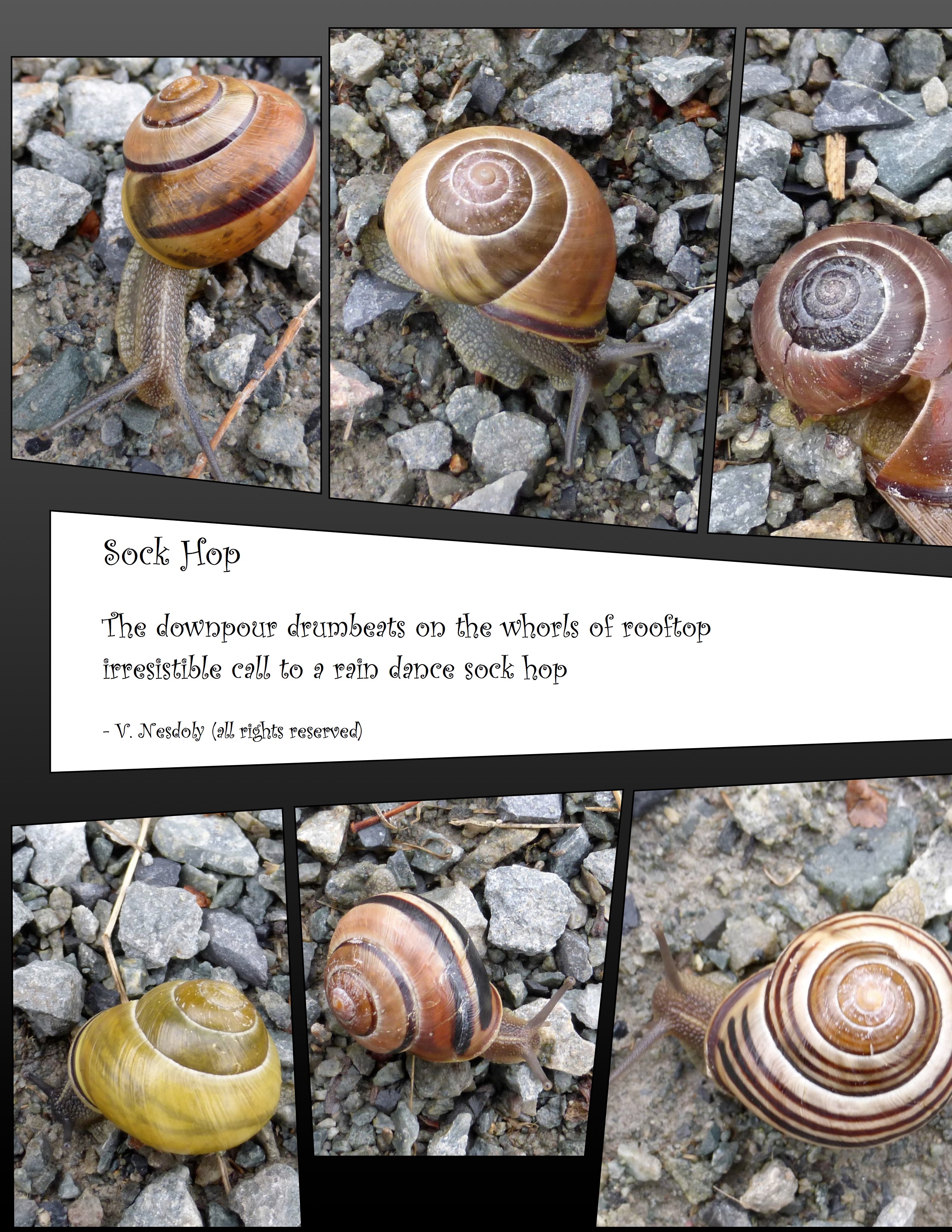 This is just adorable, Violet! I love the image of a snail sock hop, and your poem is fabulous!