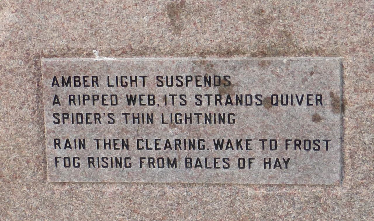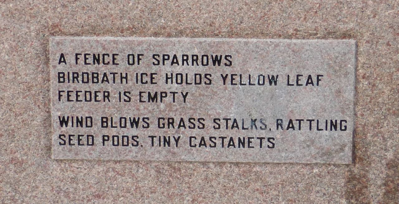 Poetry authored by Donna Kane, Marilyn Belak, Megan Kane, and Rebekah Rempel. A big thanks to reader Donna Smith who unearthed this document (p. 17) with the information about the poetry stones and their authors.