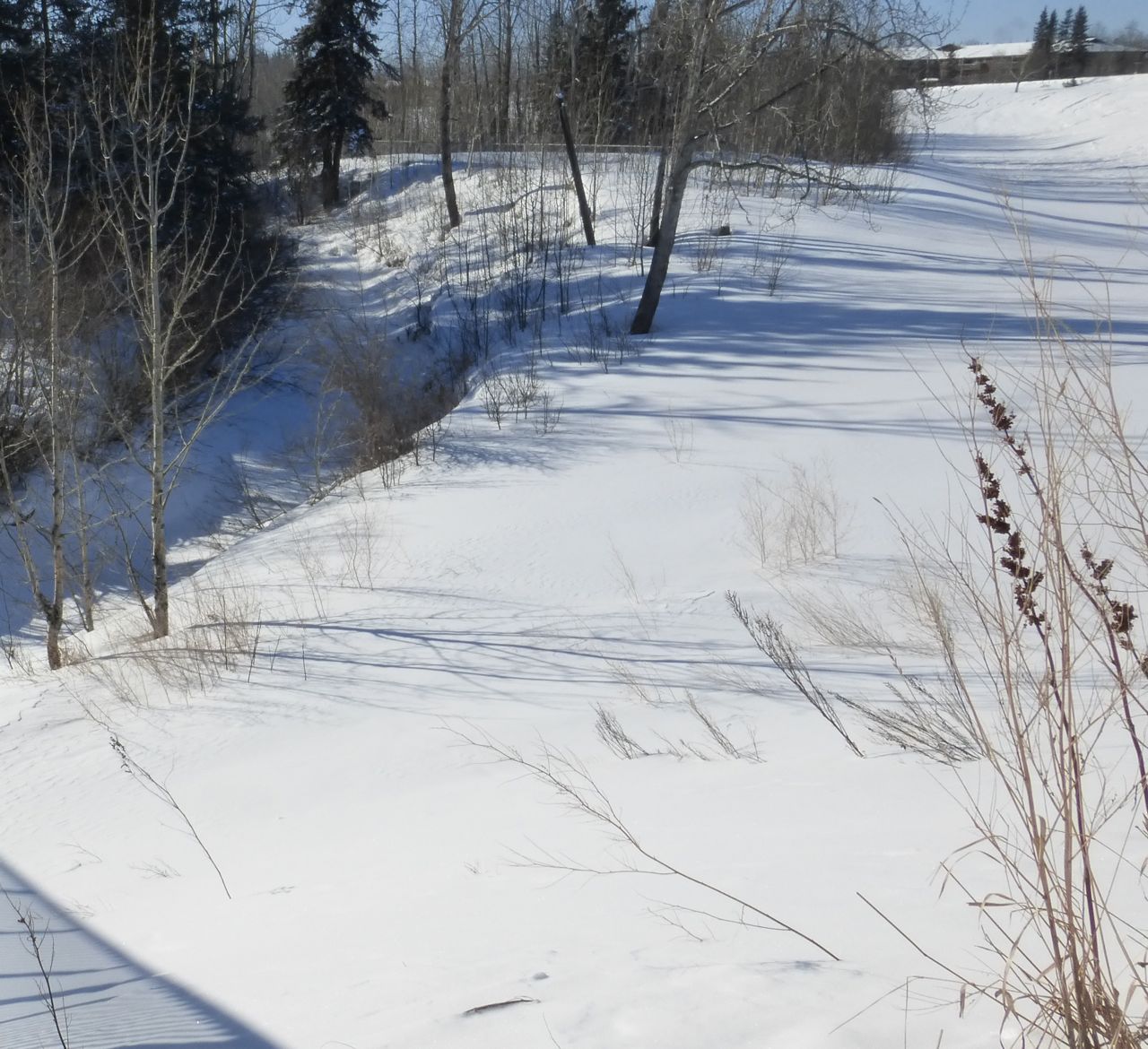 One of the things hubby and I like to do every day at home or on holiday is walk. Though I explored part of the Dawson Trail earlier in the snow, my broken hip brought an end to that. Now that I’m walking again and it’s summer, I was able to explore the full length of this trail that follows Dawson Creek’s meander through town.