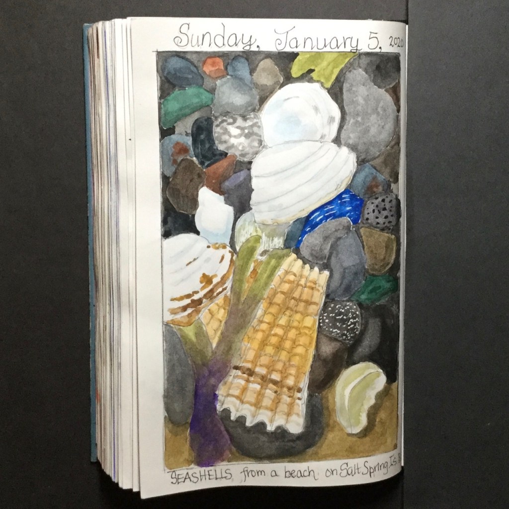 In my journey into art last year, one resolution I did keep was to do a sketchbook entry every day. With the exception of a couple of days in early January 2019, I kept that promise to myself. In the process I’m well on the way to filling up my second 110-page sketchbook.