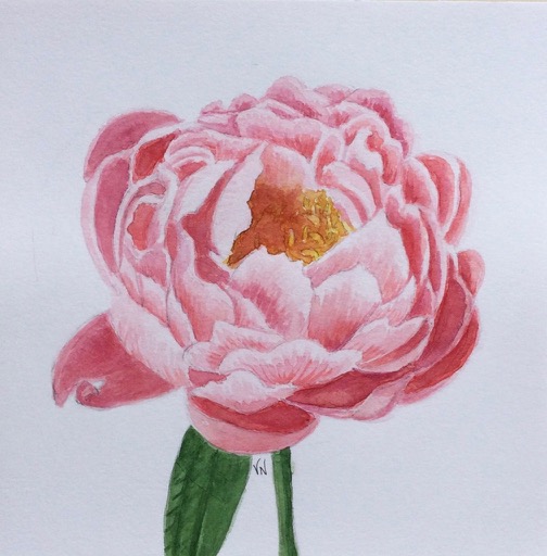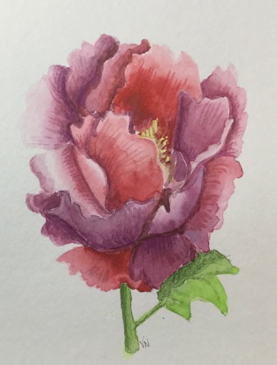 The peony painting I’m happiest with is a 7×7 inch watercolor, “Blushing Peony,” currently available for purchase in my Etsy and Pacific Arts Market shops.