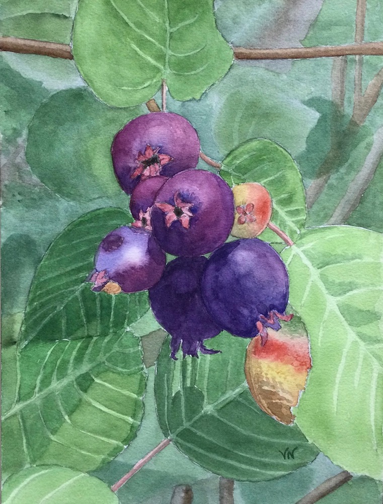 “Saskatoon Berries” – Watercolor, 9×12 inches – $150.00