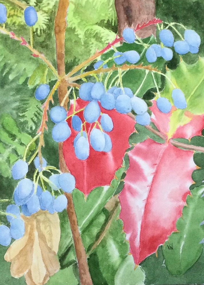 “Oregon Grape” – Watercolor, 10×14 inches, $190.00