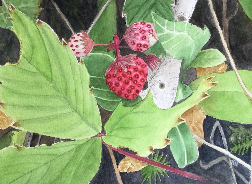 “Wild Strawberries” – Watercolor, 9×12 inches, $150.00