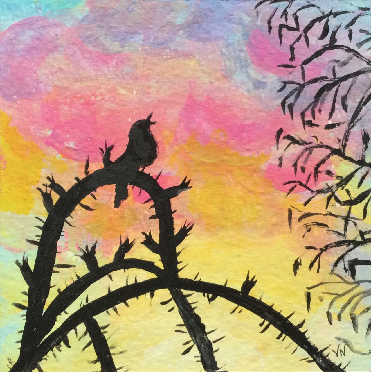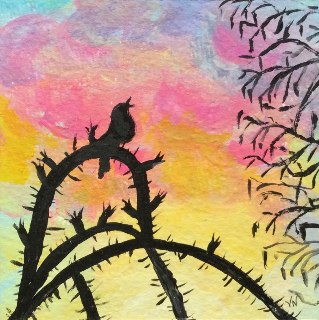 These 7×7 inch mixed media paintings are available – $60 unframed, $100 framed + postage. If interested use the Contact form on this site to let me know.