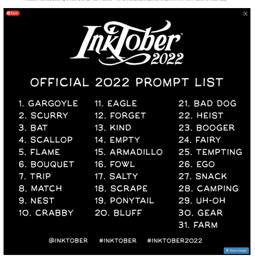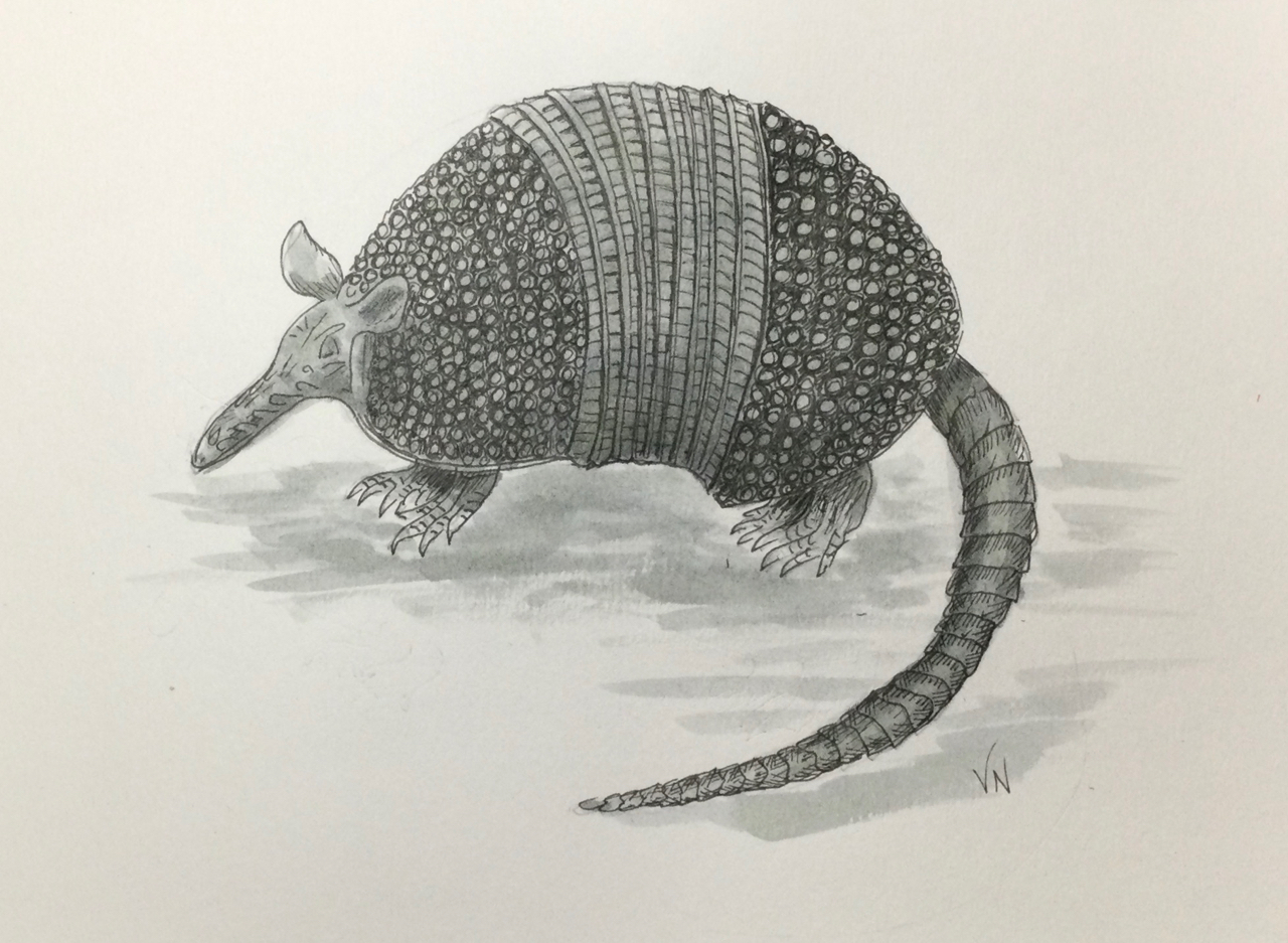 As someone who loves to draw and paint flowers, still life subjects, with the odd landscape thrown in, lists of prompts have challenged me to attempt subjects I would never do on my own. For example, the Inktober prompt for this October 15 was “Armadillo.” I have never drawn an armadillo before but this October I did.