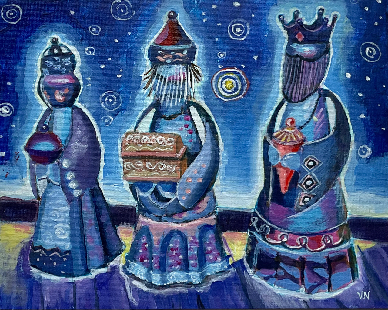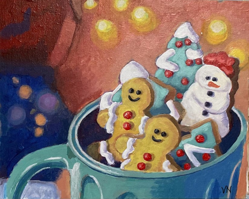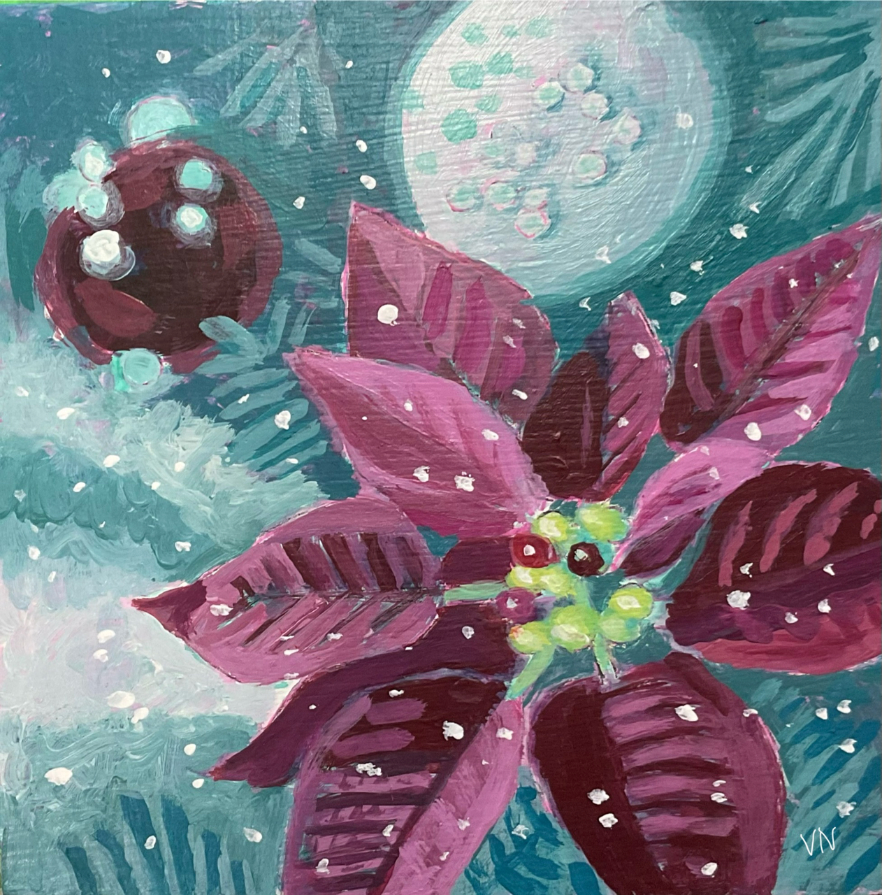 I love Christmas too, so making Christmas art is a happy experience. Last week I shared art I made as a member of Ali Kay’s Fresh Paint School. Today’s paintings are ones I designed and painted on my own.
