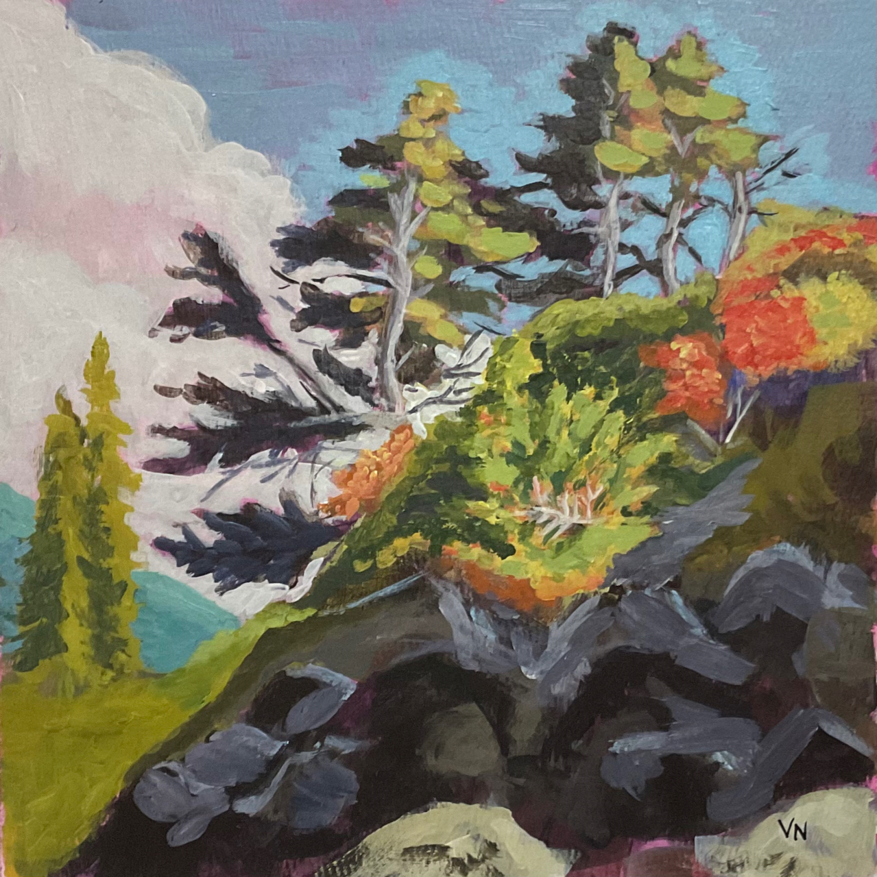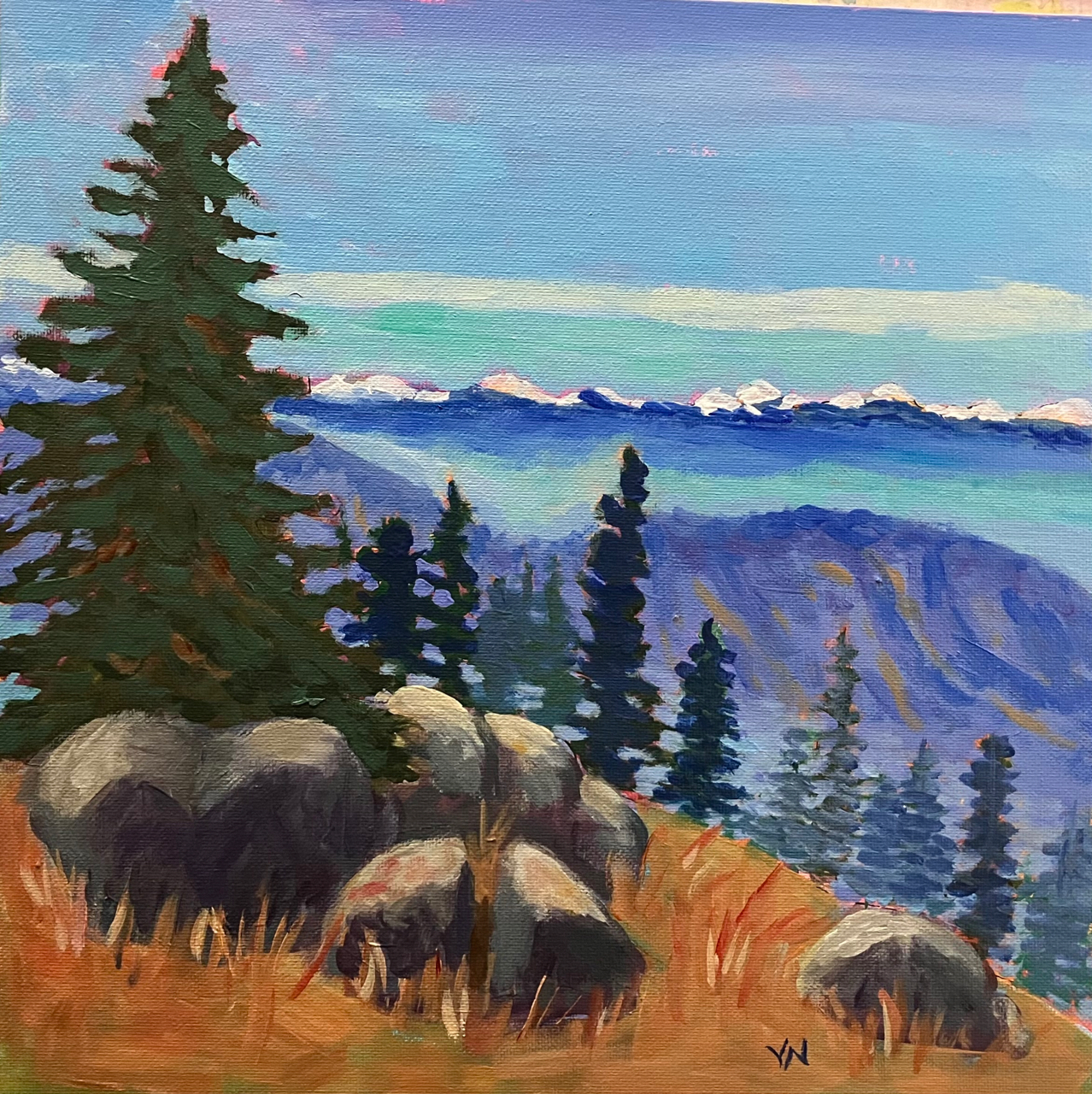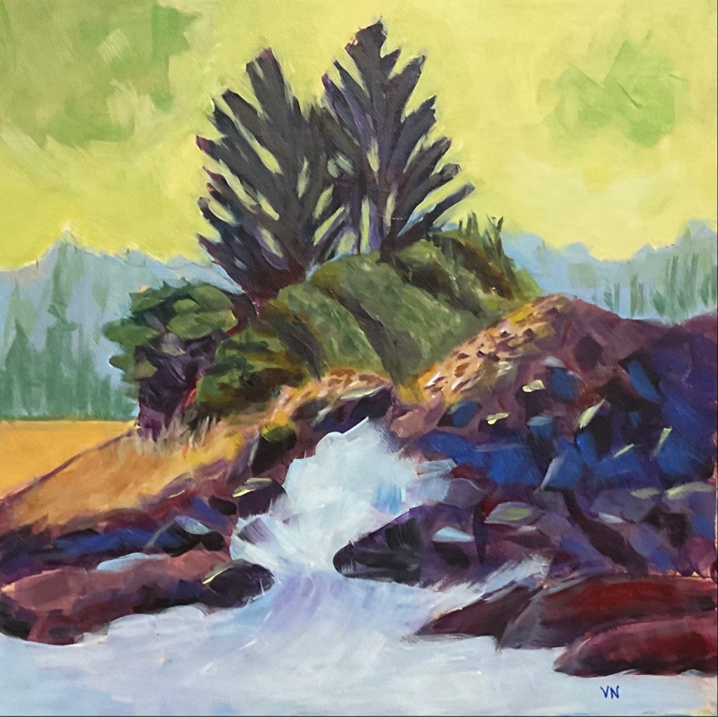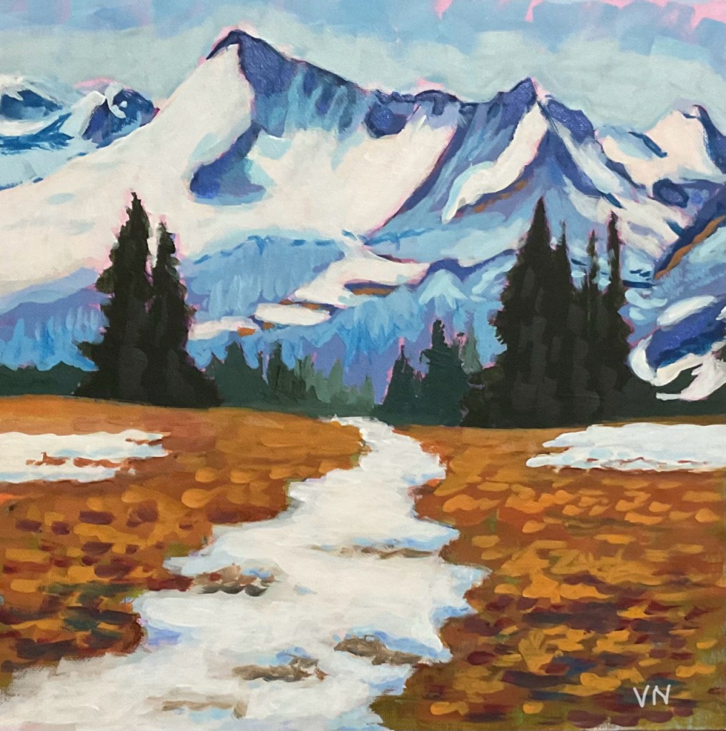 Late last year I purchased, through Acrylic University, the set of Paint Canada tutorials taught by Brian Buckrell. That means that every Friday of 2025 a new 30-minute tutorial is available to me.These tutorials are all landscapes, inspired by reference photos taken by Brian Buckrell or his late wife Cathy as they RV’d across Canada. We’re working our way across the country starting on the west coast. I can hardly believe I’ve already done six!