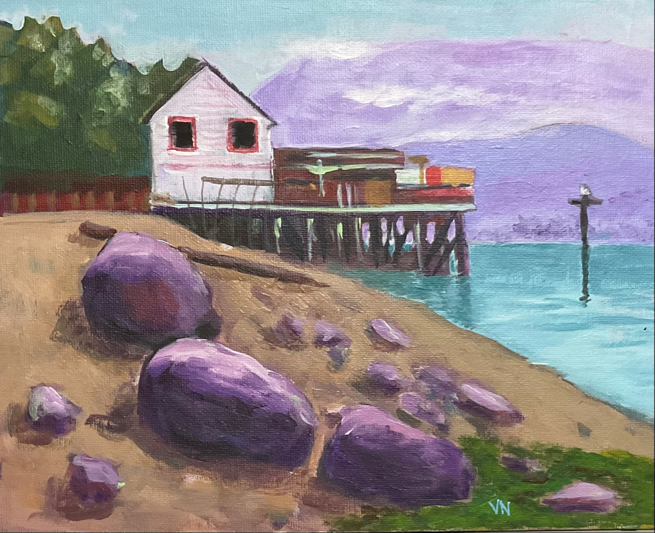 Here are my January paintings. If he graded them, I’m not sure I’d do well because I have a hard time being as loose and abstract as he encourages us to be. I am having fun with colour though and really enjoy painting scenes of my beloved BC!