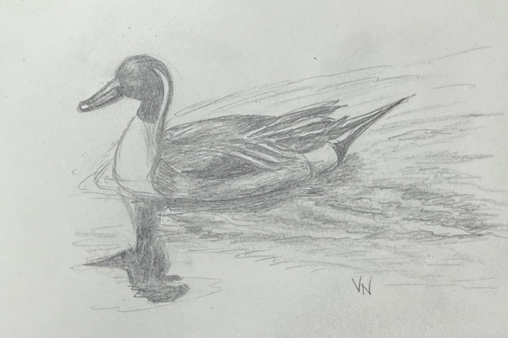 MOVEMENT – Pin Tail Duck. Pencil sketch on paper, 6 x 9 inches.