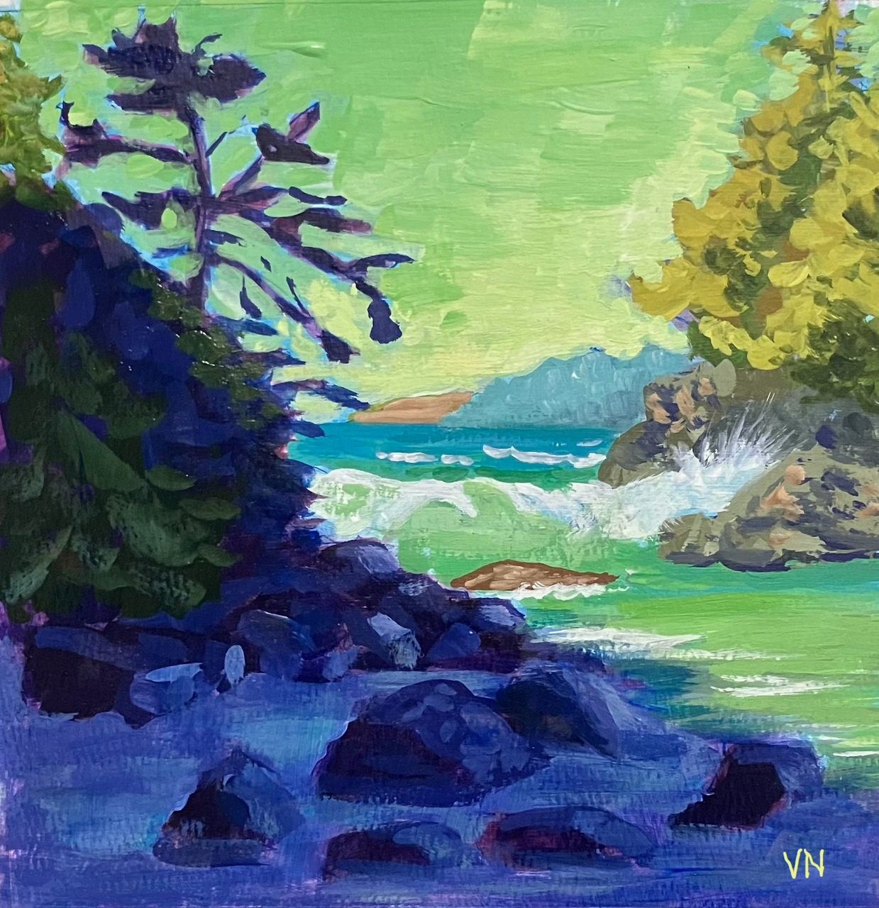 SILHOUETTE – McKenzie Beach – Acrylic on paper, 8 x 8 inches (Brian Buckrell Paint Canada Tutorial)