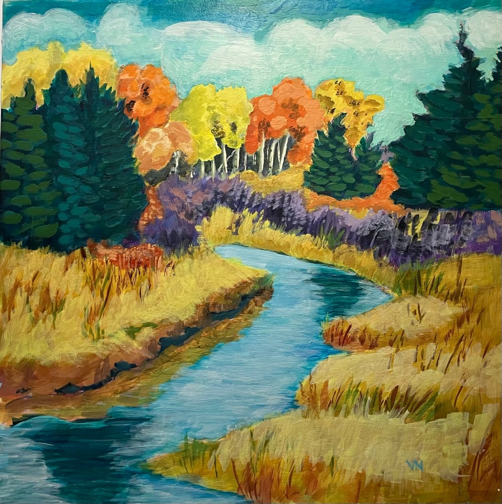 “Riding Mountain National Park, Manitoba” – Acrylic on thin plywood panel, 11.75 x 11.75 inches.