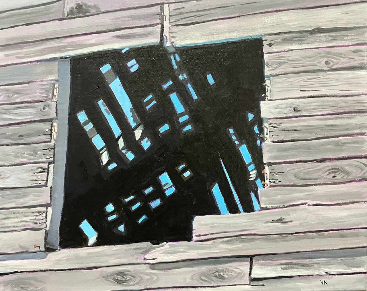 Hopefully this aging happens within a community of family and friends. The painting below is inspired by the outbuildings from the farm where I grew up, living out their retirement years together in a back meadow of the farm