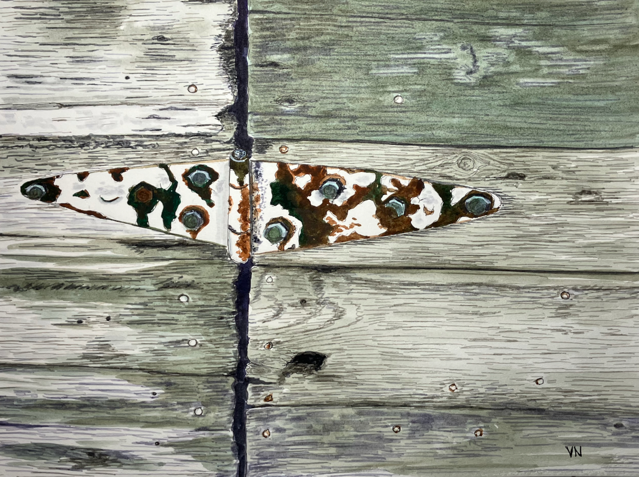 I’m pairing my poem with some art depicting old things. Rusted metal and weathered wood are a lot of fun to paint!